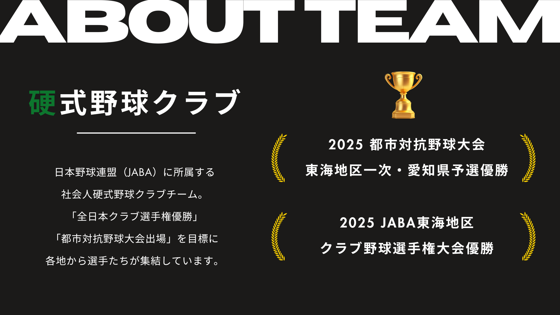 「全日本クラブ選手権優勝」および「都市対抗野球大会出場」を目標に、日々活動しています。