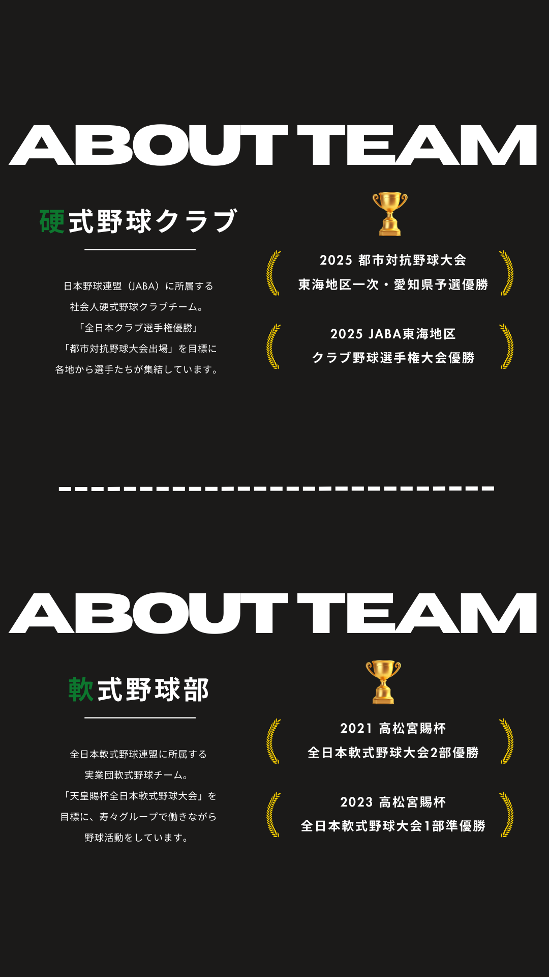 野球を出来る事を素直に感謝し、社会人野球を通じて、人間力向上を目指し、会社に貢献できる人材を育成できるように共に歩んでいきたいと思います。