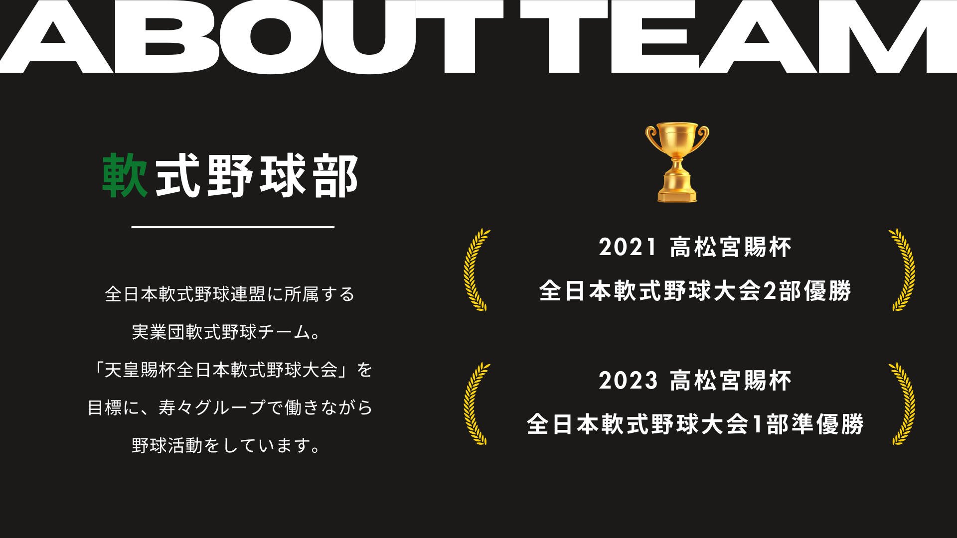 「天皇賜杯全日本軟式野球大会」への出場を目標に、日々活動しています。